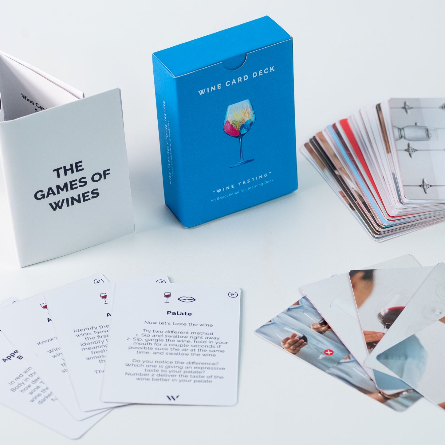 Educational Card deck about how to tasting wines 1 box consist of 50 informative card, 1 game board for your to play and learn