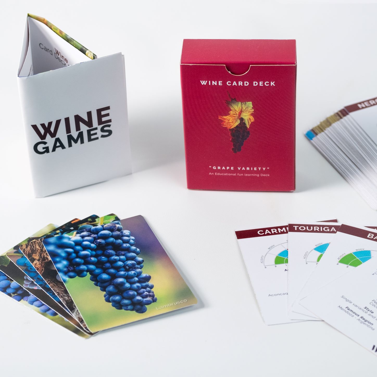 Educational card deck for you to learn the grape variety in wines 1 box consist of 50 informative card of grape variety and 1 game board for you to play and learn