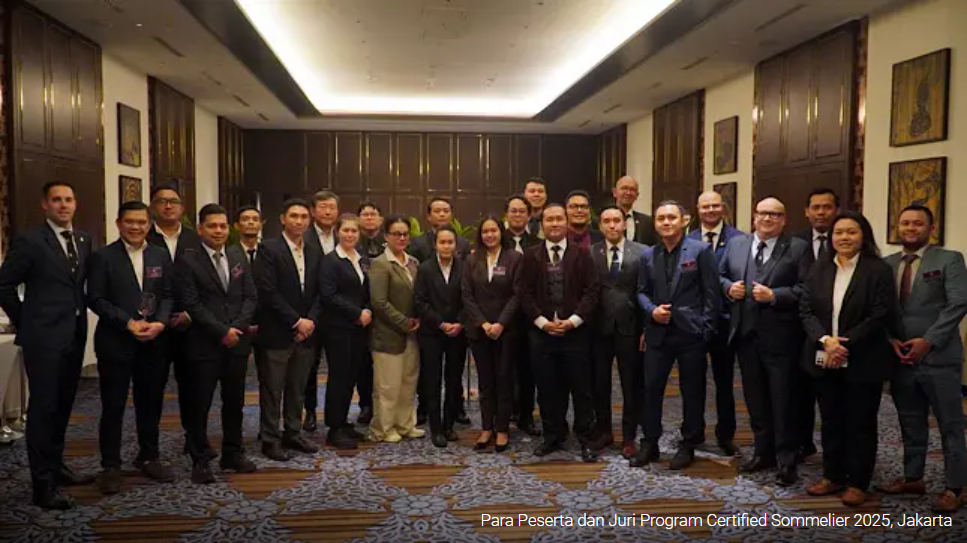 Indonesia Resmi Miliki Certified Sommelier Pertama dari Court of Master SommeliersWednesday, October 8, 2025ArticleWine ArticleUntuk pertama kalinya, Indonesia menjadi tuan rumah program sertifikasi bergengsi Court of Master Sommeliers (CMS), lembaga internasional tertinggi di dunia wine service. Diselenggarakan di Fairmont Jakarta pada 4–6 Oktober 2025, kegiatan ini dipimpin oleh tiga Master Sommelier ternama: Ronan Sayburn MS (CEO CMS Europe), Kamal Malik MS dari India, dan Yohann Jousselin MS dari Prancis. Selama dua hari workshop dan satu hari ujian intensif, para peserta diuji kemampuan teori, blind tasting, serta keahlian pelayanan anggur. Dari total 21 peserta, 18 berasal dari Indonesia dan sisanya dari Malaysia, Thailand, serta Singapura. Hasilnya, 9 peserta lulus Introductory Certified dan 3 berhasil meraih Certified Sommelier. Pencapaian tertinggi diraih oleh Muhamad Yusud Breda dari Biko Group untuk level Introductory, dan Adam dari Union Group untuk level Certified.\ “Kemampuan sommelier Indonesia kini sepadan dengan negara lain di dunia,” ujar Ronan Sayburn, seraya mengapresiasi penyelenggaraan perdana yang dinilai sukses." Program ini diinisiasi oleh Kertawidyawati, wine educator sekaligus founder Widya’s World of Wines dan Jaddi Academy, yang ditunjuk sebagai penyelenggara resmi CMS di Indonesia. Widya dikenal sebagai sosok di balik hadirnya pendidikan WSET (Wine & Spirit Education Trust) di Tanah Air, serta aktif mengembangkan edukasi wine melalui berbagai pelatihan dan media sosial. “Senang sekali akhirnya CMS hadir di Indonesia, dan kami berharap program ini berlanjut setiap tahun,” ungkap Widya. Terselenggara berkat dukungan Asia Wine Institute dan sponsor seperti Jaddi International, Indonesia Sommelier Association, Lucaris Crystal, dan Barton & Guestier, kehadiran CMS di Jakarta menandai babak baru dunia wine Indonesia. Sebuah langkah penting yang membawa profesi sommelier lokal ke panggung global dengan standar internasional. Source:https://traveletc.id/court-of-master-sommeliers/